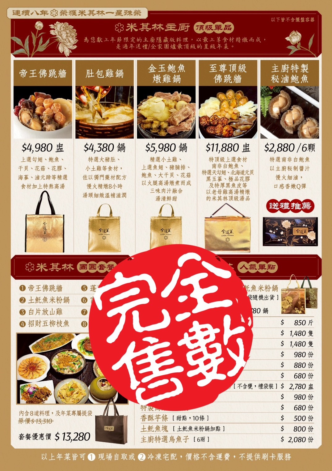 2026年金蓬萊米其林一星年菜DM &訂購說明