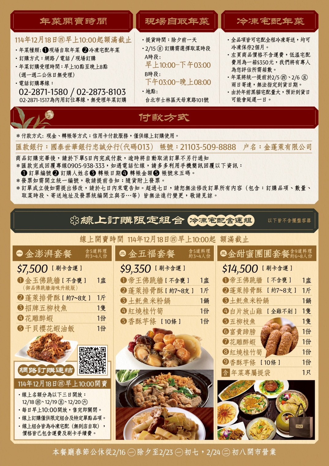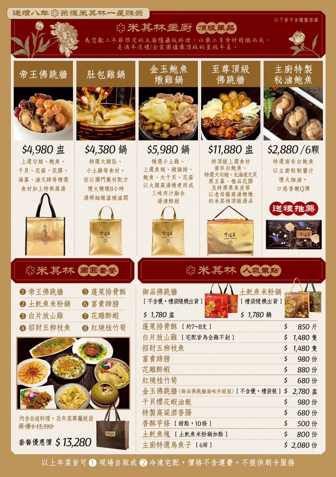 2026年金蓬萊米其林一星年菜DM &訂購說明